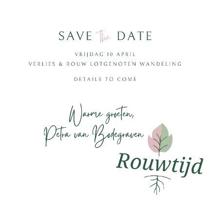 Nu sta ik, Petra, hier met Rouwtijd, om er te zijn voor anderen die leven met verlies voor wie het niet altijd vanzelfsprekend is om je rouw te kunnen delen met de mensen om je heen. Die uit ervaring weet hoe fijn het is als iemand écht luistert, die je verhaal hoort zonder haast en zonder oordeel. Ik vind niks gek, en jou zéker niet. Ik geef je houvast in een periode waarin alles onzeker voelt.